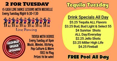 $5 CASH Line Dance Lesson 6:30-7:30 AND Trivia with Debbie at 8pm