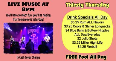 $5 Cash Cover Charge Thurs, Fri & Sat Nights for LIVE MUSIC