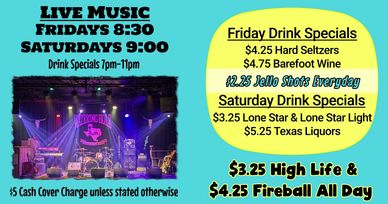 Live Music 8pm ~ $5 Cash Cover